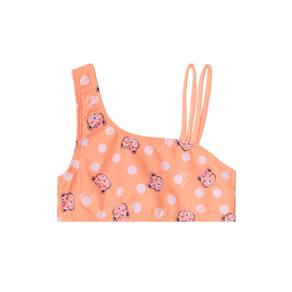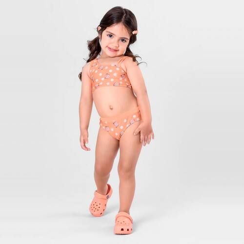 Para a pequena se destacar nos dias de sol, seja na praia ou na piscina com o biquíni infantil menina beach wear composto por top e calcinha em malha UV. O top possui alça larga e alça final dupla e estampa rotativa, já a calcinha também com estampa rotativa conta com elástico no cós. Tanto o top quanto a calcinha possuem uma estampa rotativa vibrante e colorida, refletindo a alegria e a diversão do verão.