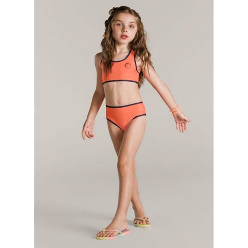 Na praia ou na piscina com as amigas o Biquíni infantil menina Beach wear é perfeito para as horas de diversão, composto por top e calcinha em malha UV . O top possui estampa localizada já a calcinha em cor lisa conta com faixar laterais largas. Aposte! Esse modelo de biquíni infantil para meninas é confeccionado em malha com proteção UV 50 FPS com toque macio e confortável para as pequenas aproveitarem cada momento com conforto.