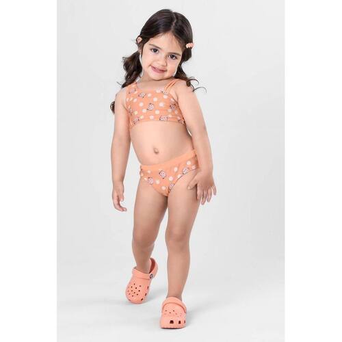 Para a pequena se destacar nos dias de sol, seja na praia ou na piscina com o biquíni infantil menina beach wear composto por top e calcinha em malha UV. O top possui alça larga e alça final dupla e estampa rotativa, já a calcinha também com estampa rotativa conta com elástico no cós. Tanto o top quanto a calcinha possuem uma estampa rotativa vibrante e colorida, refletindo a alegria e a diversão do verão.