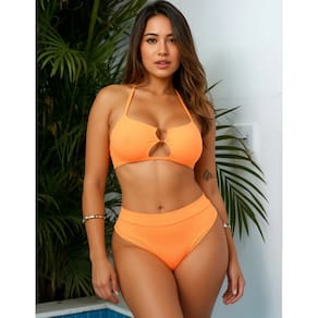 A parte superior possui um design moderno com argola metálica no centro do busto, além de um recorte ousado e delicado que valoriza o colo sem perder a sofisticação. As alças que amarram no pescoço garantem ótima sustentação e permitem ajuste ideal ao corpo. A calcinha de cintura alta é puro charme. Com corte que modela a silhueta e valoriza as curvas, oferece segurança, conforto e um visual super atual, perfeito para quem ama se sentir confiante na praia, na piscina ou criando aquele conteúdo para a s redes sociais. Destaques do modelo de Modelagem Perfeita: Top com argola central e recorte no busto Alças ajustáveis para melhor caimento Calcinha cintura alta que valoriza a silhueta Confortável, estiloso e com tecido de secagem rápida Ideal para bronze, fotos, viagens e vídeos virais Disponível em três cores: vinho, laranja neon e pink neon Tamanhos disponíveis P e M Detalhes: costas nuas Comprimento: cropped Linha da cintura: cintura alta Característica: secagem rápida Estilo: sensual Model odo sutiã: com fio Decote: frente única Nº de peças: conjunto de 2 peças Elasticidade do tecido: elasticidade média Material: tecido Composição: 94% poliéster, 6% elastano Enchimento para os seios: sem enchimento Translúcido: não