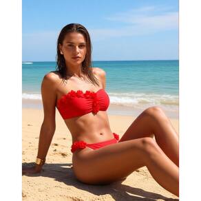 Lindo Biquini, de alta qualidade, com bojo de preenchimento removível, sutiã sem armação, decote bandeau, franzido floral 3D. Aproveite o verão 2026, férias, praia e piscina, com esse biquini de alta elasticidade, estilo sensual. Composição do tecido: 80% poliamida e 20% elastano. Cor: Vermelho Tamanhos: P, M e G