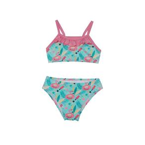 O biquíni infantil para meninas com estampa de flamingo é uma ótima opção para moda praia.