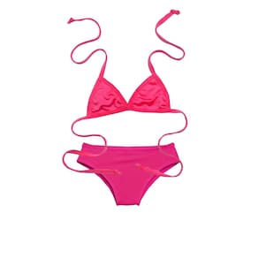 O modelo cortininha é um clássico que nunca sai de moda, e a cor rosa traz ainda mais charme e delicadeza para a peça. As pequenas vão se sentir verdadeiras fashionistas enquanto brincam na areia ou dão um mergulho refrescante.