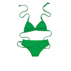 Disponível nos tamanhos do 1 ao 14, o biquíni é adaptável para diferentes idades, proporcionando conforto e estilo para as meninas. A cor verde é uma escolha refrescante e versátil, que combina com a atmosfera praiana e os dias ensolarados.