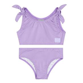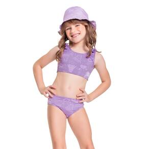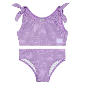 Descubra a magia do verão com o adorável biquíni infantil revela estampa na água com proteção UV 50+ lilás Quimby! Este conjunto encantador apresenta um top com lacinhos nos ombros e uma calcinha, ambos lisos. Quando mergulhado na água, uma estampa encantadora ganha vida, revelando seus motivos marinhos de maneira mágica. Perfeito para dias de diversão ao sol e brincadeiras na praia, oferece não apenas estilo, mas também conforto e proteção para sua pequena exploradora.