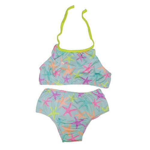 Biquini infantil - Top e calcinha estampado - Estampa: Estrelas do mar / Tamanho: 2 anos / Cor: Azul claro