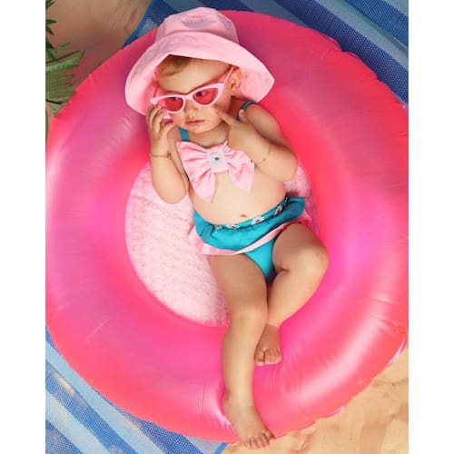 Lindo biquini floral com proteção Uv. estampa margarida com alças ajustáveis e calcinha estilo tapa fralda para mais conforto do bebê.