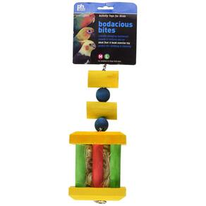- Os brinquedos Bodacious Bites Bird incentivam exercícios com os pés e o bico, ao mesmo tempo que estimulam a mente