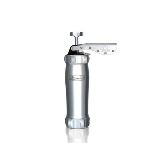 A nova biscoiteira é uma combinação de pesquisa, desenvolvimento e tecnologia. É uma máquina adorável, com a qual podem ser preparados 20 tipos de biscoitos em 2 tamanhos em casa. São 20 matrizes e 2 tamanhos diferentes: 1 para biscoitos pequenos faz entre 35 e 40 biscoitos e o 2 para biscoitos grandes faz entre 20 e 25 biscoitos maiores . Seu corpo é feito de Alumínio anodizado, próprio para o uso com alimentos. A coloração é feita no processo de oxidação do Alumínio. Importante: não usar papel manteiga, não levar a lava louças, não limpar com objetos de metal e usar somente água morna e detergente neutro. Disponível nas cores: prata, vermelha e preta