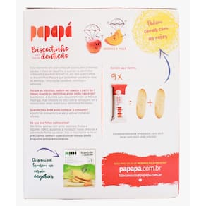 Os biscoitinhos para dentição são 100 por cento naturais pensados para bebês a partir dos sete meses que estão passando pela fase em que seus dentinhos estão nascendo. Sua textura é durinha por fora para o o bebê coçar a gengiva, mas dissolve na boca para evitar o engasgue, o que o torna facinho pra engolir. Produto natural, sem glúten, sem lactose, sem conservantes e sem aditivos, definitivamente feito para bebês. Biscoito para fase da dentição infantil natural com sabor à base de arroz abóbora e maçã sem glúten sem adição de sal. A caixa de Papapá biscoitinho para fase de dentição contém 2 bisnagas totalizando 36g. Sabor Maçã e Abóbora. Ean: 7898994908777