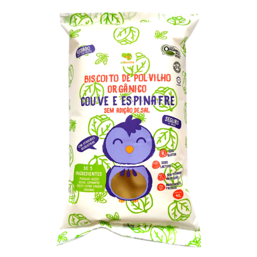O Biscoito de Polvilho Couve e Espinafre Vegano Orgânico Crilancha é uma versão especial para os babys a partir de 6 meses. Produzido sem adição de sal, leva apenas 5 ingredientes.
