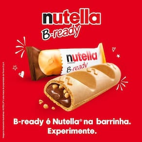 Sobre o Nutella B-ready - Deliciosos snacks prontos para saborear em qualquer lugar. - Embalagens individuais perfeitas para lanches ou acompanhamento do café. - Wafer leve e crocante, com recheio cremoso de Nutella. - Nutella é uma marca renomada da Ferrero da Itália.