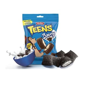 Caixa contendo 8 pacotes de biscoito recheado Teens sabor artificial de baunilha enriquecido com Vitaminas e Mineral, com 30 gramas cada. Peso líquido 240 gramas.