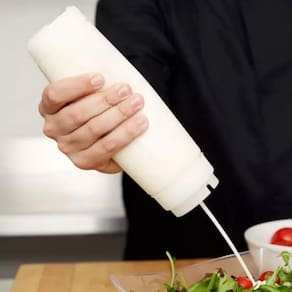 Bisnaga Para Molho Invertida 600ml Com Válvula Amarela Praticidade, higiene e eficiência na sua cozinha A Bisnaga para Molho Invertida 600ml com Válvula Amarela é ideal para o ou doméstico, proporcionando aplicação precisa de molhos, condimentos, caldas e temperos. Com válvula de silicone antivazamento e corpo flexível, evita sujeiras, reduz o desperdício e oferece conforto no manuseio. Seu sistema invertido permite armazenamento na vertical, facilitando o acesso imediato e garantindo agilidade no preparo dos alimentos. Descrição Técnica: Capacidade: 600ml Material: Plástico PE flexível livre de BPA Cor: Transparente com tampa e válvula amarela Válvula: Dosadora de silicone antivazamento Design: Invertido - pode ser armazenada com a válvula voltada para baixo Aplicação ideal para: Molhos, caldas, ketchup, mostarda, maionese, temperos líquidos, etc. Indicado para: Cozinhas industriais, lanchonetes, food trucks, hamburguerias e uso doméstico Benefícios: Evita desperdício e contaminação Aplicação uniforme e controlada Não cansa as mãos durante o uso Fácil de limpar e reutilizar