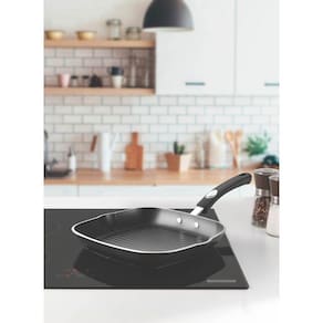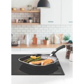 Bistequeira Tramontina Mônaco Induction em Alumínio com Revestimento Interno e Externo Antiaderente Starflon Premium Preto 24 cm 1,5 L Corpo de alumínio com espessura de 3,0 mm que proporciona cozimento rápido e uniforme. Revestimento interno e externo de antiaderente Starflon Premium que não gruda, é fácil de limpar, mais durável e não é prejudicial a saúde.Cabo metálico com proteção de silicone que proporciona redução da propagação de calor, aumentando a segurança e melhorando a empunhadura. Pode ir à máquina de lavar louças facilitando seu dia a dia. Recomendações de uso A capacidade volumétrica máxima para cozimento é de 3/4 da capacidade total da peça. Posicione os cabos dos utensílios voltados ao centro do fogão.Em fogões com grade, centralize a peça e alinhe o cabo com a grade. Utensílios quentes devem estar fora do alcance das crianças.Este produto não pode sofrer modificações. Antes do primeiro uso, lave com esponja macia, sabão neutro ou detergente líquido. Depois de secar, unte a área interna com óleo ou gordura e leve ao fogo por um ou dois minutos. Deixe esfriar e lave novamente. Seu utensílio Starflon está pronto para uso com ou sem gordura, sempre em fogo baixo ou médio (nunca superior a 350ºC). Para mexer os alimentos use somente utensílios de silicone, nylon ou madeira. Evite a imersão do utensílio quente em água fria. Nunca utilize produtos abrasivos na lavagem. Se deixar queimar alimentos, umedeça a área e reserve até que possa remover os resíduos grudados com esponja e sabão.Para descarte dos produtos e embalagens siga as orientações de reciclagem vigentes. Este produto não necessita de manutenção, apenas limpeza.