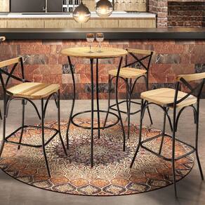 Bistrô com 3 banquetas de madeira - Lais - Metal Art