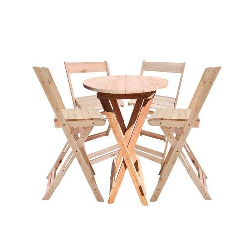 Kit Bistrô Pinus Dobrável com 4 Banquetas de Madeira