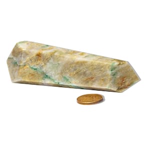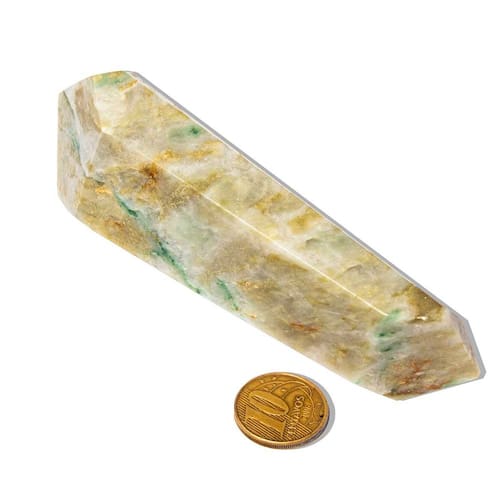 Descubra o poder transformador do Jade, uma pedra natural que irradia energias de equilíbrio e harmonia. Este cristal Vogel Bi-Terminado, com lapidação de 6 Facetas e ponta dupla, foi projetado para maximizar a fluidez energética, oferecendo proteção suave contra influências externas, enquanto promove serenidade emocional e renovação energética. Ideal para aqueles que buscam fortalecer seu campo energético e criar um ambiente pacífico e revitalizante. Características da PeçaNome da Pedra: JadeCor: Tons de verde vibrante, com nuances claras e escurasLapidação: Vogel Bi-Terminado com 6 FacetasMedidas Aproximadas: 11 a 12cmPeso Aproximado: 140 a 160gOrigem: Brasil Propriedades Energéticas do JadeO Jade é uma pedra amplamente conhecida por suas propriedades, tranquilidade e equilíbrio. Com sua cor verde serena e textura suave, o jade é altamente valorizado por promover paz interior, estabilidade emocional e equilíbrio físico. Esta pedra também é reconhecida por sua capacidade de atrair prosperidade e harmonia, sendo uma excelente escolha para quem busca bem-estar e renovação espiritual. Por que escolher o Jade?O Jade é muito valorizado por suas qualidades de harmonia e proteção energética. Sua cor vibrante e energia suave a tornam uma pedra poderosa e eficaz para quem busca equilíbrio emocional e serenidade, além de proporcionar estabilidade em momentos de tensão. Além de seus benefícios energéticos, o jade também oferece uma estética refinada, tornando-se uma peça única e marcante em qualquer ambiente. Cuidados e AutenticidadePor se tratar de uma pedra natural, variações na tonalidade e pequenas inclusões são normais e garantem sua originalidade.Para manter seu brilho e energia, recomendamos limpeza periódica e exposição à luz solar para recarregar suas propriedades. Adquira já o seu Vogel em Jade e experimente a poderosa proteção energética, equilíbrio e serenidade que ele pode proporcionar! Marca: CristaisdeCurvelo