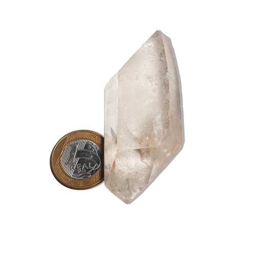 BiTerminado de Quartzo Cristal Natural com a ponta retificado(bico restaurado) Descrição do Produto:\nNome da Pedra: Quartzo Cristal Bi Terminado (Bi Ponta) Cor da Pedra: Cristalino Hialino (translúcido) Corte: Sem lapidação, bruto natural, com ponta dupla Claridade da Pedra: Cristalizada, semi-transparente Medidas Aproximadas: 80 a 90 mm Peso Aproximado da Pedra: 40 a 80 gramas Origem: Curvelo, Minas Gerais, Brasil\nObservação Importante: Por se tratar de uma pedra natural, a pedra que você receberá pode apresentar variações em suas tonalidades, grafismos e pequenas inclusões. Essas características são comuns em minerais autênticos de garimpo. A pedra foi apenas lavada para retirar a terra do garimpo. A hidratação deve ser feita com óleo mineral. Leia e entenda as propriedades deste mineral antes de comprar! Marca: CristaisdeCurvelo