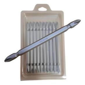 Melhore seu desempenho em parafusamentos com o Kit de 10 Bits PH2 100mm com Pontas Duplas Imantadas Esses bits são ideais para uso em parafusadeiras e furadeiras, oferecendo a praticidade de pontas duplas e a eficiência de extremidades imantadas.