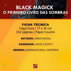 Título do livro : Black magick Vol. 1 Subtítulo do livro : O primeiro livro das sombras Autor : Greg Rucka Idioma : Português Editora do livro : MYTHOS EDITORA Capa do livro : Dura Ano de publicação : 2021 Quantidade de páginas : 332 Altura : 275 mm Largura : 185 mm Peso : 776 g Gênero do livro : Histórias em quadrinhos, mangá e graphic novel Subgêneros do livro : Histórias em quadrinhos e graphic novels Ilustradores : Nicola scott Data de publicação : 15-02-2022