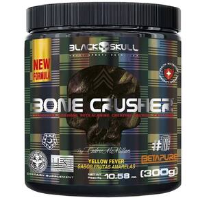Black Skull Bone Crusher 300G - Frutas AmarelasPré treino black skull bone crusher 300gO bone crusher nova fórmula é um pré-treino composto por beta alanina, creatina, arginina, taurina e cafeína, ideal para dar um gás nos seus treinos e potencializar seus resultadosIngredientes:beta alanina, creatina monohidratada, arginina, taurina, cafeína anidra, c. Crispus invernal, acidulante ácido cítrico, aromatizantes, antiumectante dióxido de silício, edulcorante sucralose e corantes artificiais amarelo tartrazina e vermelho 40.Não contém glúten