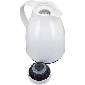 Blanc Garrafa Térmica 24x18x15cm 1l Plástico Branco Ampola Vidro Essa garrafa térmica está na moda. Ela é fabricada com materiais resistentes e duráveis: plástico e ampola de vidro. Possui um design que contribui com a decoração da mesa, é bastante funcional e conserva a temperatura ideal das bebidas quentes ou frias por até 24 horas.