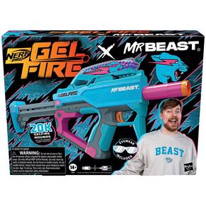 Blaster automático completo NERF Pro Gelfire X MrBeast e 20.000 cartuchos Gelfire, 300 cilindros redondos, bateria recarregável, óculos para maiores de 14 anos - BLASTERS NERF PRO GELFIRE: eles disparam cartuchos hidratados que explodem com o impacto e oferecem jateamento de alto desempenho para aumentar sua vantagem competitiva. A partir de 14 anos — NERF PRO GELFIRE X MR BEAST BLASTER: Inspira-se em Mr Beast, também conhecido como Jimmy Donaldson, um criador digital americano que acumulou mais de 100 milhões de inscritos nos últimos 10 anos e se tornou um ícone entre as gerações mais jovens em todo o mundo - 20.000 RODADAS DESIDRATADAS NERF PRO GELFIRE: adicione água para hidratar os projéteis de polímero superabsorvente macio. Eles disparam em alta velocidade e explodem quando atingem um alvo. Sem necessidade de coleta - NERF PRO GELFIRE TOTALMENTE AUTOMÁTICO NERF PRO GELFIRE X MRBEAST BLASTER: dispara até 10 tiros por segundo. Possui modos totalmente automático e semiautomático, funil de 300 cartuchos de alta capacidade e bateria recarregável removível - INCLUI ESTOQUE EXTENSÍVEL, ACESSÓRIO DE CILINDRO REMOVÍVEL, ÓCULOS DE PROTEÇÃO, TRAVA DE GATILHO E TRILHOS TÁTICOS: inclui cabo universal de carregamento rápido USB-A a USB-C para a bateria recarregável. Não coma. Mantenha-se afastado de animais de estimação.