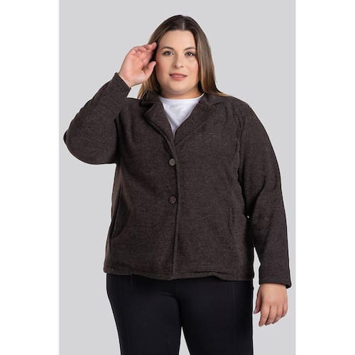 Blazer feminino plus size elaborado em bouclê. Possui fechamento por botões, bolsos na parte da frente, toque macio, quentinho, que o tecido bouclê possui, sem esquecer que é peluciado e possui elasticidade. Ideal para os dias frios, sejam intensos ou não, peça versátil que nunca sai de moda, o blazer será a o "coringa" em seu guarda roupas. Monte variados e infinitos looks com ele, do jeans a leggui, para o dia ou a noite, trabalho ou passeio, não importa onde você estiver, estará bem vestida e totalmente confortável.