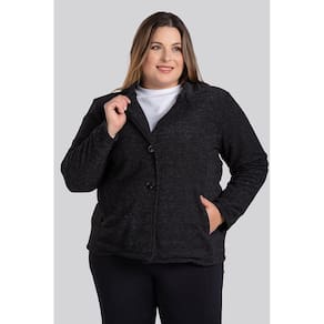 Blazer feminino plus size elaborado em bouclê. Possui fechamento por botões, bolsos na parte da frente, toque macio, quentinho, que o tecido bouclê possui, sem esquecer que é peluciado e possui elasticidade. Ideal para os dias frios, sejam intensos ou não, peça versátil que nunca sai de moda, o blazer será a o "coringa" em seu guarda roupas. Monte variados e infinitos looks com ele, do jeans a leggui, para o dia ou a noite, trabalho ou passeio, não importa onde você estiver, estará bem vestida e totalmente confortável.