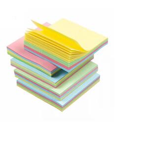 Bloco de recados autoadesivo reposicionável. contém 100 folhas, sendo 25 de cada cor em tons pasteis nas cores amarelo, azul, verde e rosa. É possível selecionar a cor sem danificar a outra Embalagem: Saquinho Cor / Estampa / Personagem: Pastel Colors Formato: Grande: 76mm x 102mm Quantidade de folhas: 100 folhas Material: Papel