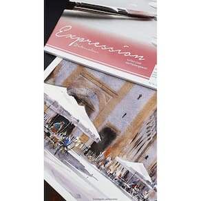Papel aquarela 100% algodão Grão Fino, branco natural e indicado para todas as técnicas úmidas. Expression Watercolour é colado na superfície. Esta colagem com produtos naturais e isenta de gelatina ou outros derivados animais, contribui para uma absorção mais lenta dos pigmentos, preservando seu brilho natural. Permite maior possibilidade de correções e raspagens, sem deixar resíduos na superfície do papel. Máscaras líquidas e fitas adesivas também podem ser usadas e removidas sem danificar a superfície do papel. Enquanto a tinta ainda estiver molhada, as cores podem ser facilmente corrigidas ou removidas. Expression Watercolour é livre de ácido, ph neutro, resistente ao envelhecimento e vegano.