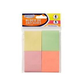 - 4 Blocos Auto Adesivo Para Anotações Tons Pastel 38x51mm BRW Com 50 Folhas Cada
