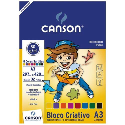 Bloco colorido Criativo A3 80g com 8 cores - com 32 folhas - Canson