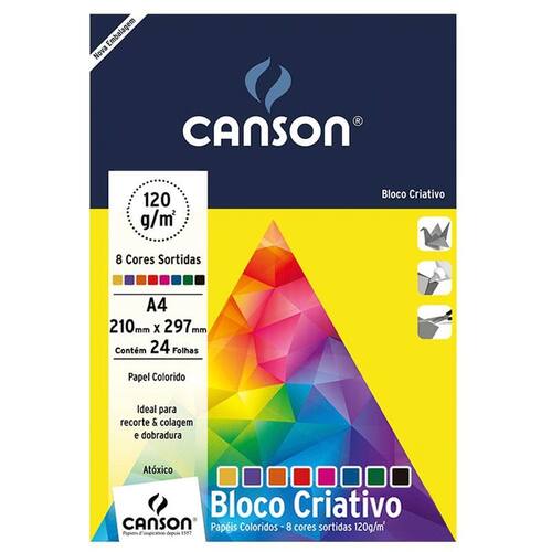 Bloco colorido Criativo Cards A4 120g com 8 cores - com 24 folhas - Canson