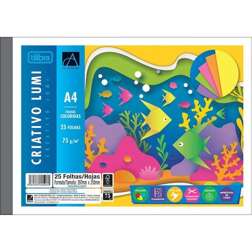 O Caderno Colado Criativo A4 Lumi Académie 25 Folhas, possui papel resistente e luminoso é ideal para o dia a dia na escola em atividades que desenvolvam a imaginação e a criatividade como recortes, colagens, desenhos e dobraduras.