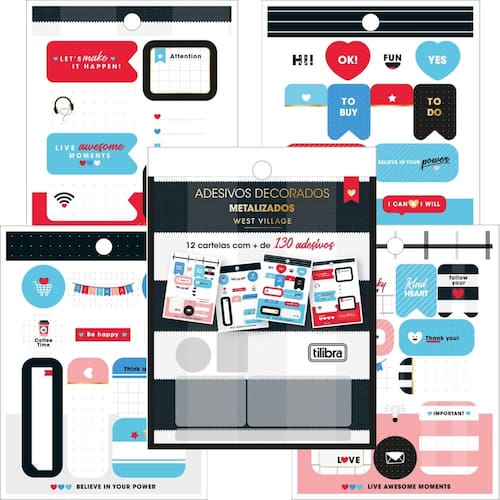 O Bloco de Adesivos Decorados West Village Metalizado é excelente para organizar projetos, destacar ideias e decorar. Possui 12 cartelas com adesivos variados que podem ser utilizados em cadernos, agendas, planners e muito mais.