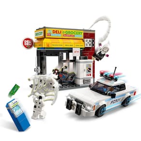 O conjunto de jogos do Homem-Aranha vem com 4 minifiguras: Miles Morales, The Spot, Gwen Stacy e o Oficial Jefferson A loja de conveniência tem um recurso de parede explosiva que permite que o caixa eletrônico seja removido Os acessórios incluem uma corda de teia longa e flexível e uma teia flexível que é grande o suficiente para envolver uma minifigura O carro da polícia abre para permitir que 2 minifiguras sejam colocadas dentro