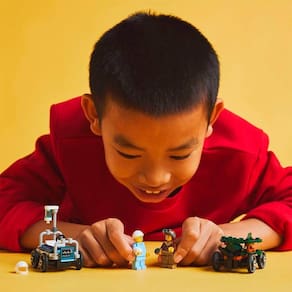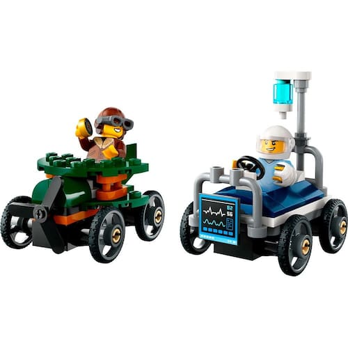 As crianças podem viajar para qualquer destino, as viagens ficam na fronteira da imaginação. Este divertido conjunto de corrida apresenta 2 carros de corrida de caixa de sabão e 2 minifiguras. As crianças podem colocar o piloto no avião voador contra o paciente na cama de hospital surpreendentemente rápida. Quem vencerá? Sente-se para uma ação de corrida urbana épica!