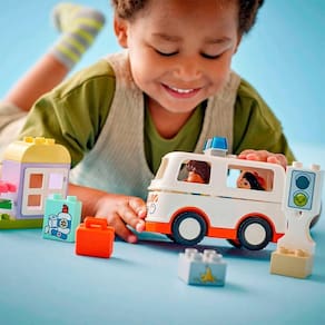A linha LEGO DUPLO possui peças grandes, com cores vivas e fáceis de manusear! Essa linha foi desenvolvida para que crianças menores também possam aprender brincando enquanto montam suas próprias criações! Detalhes: • Os conjuntos LEGO DUPLO vêm com peças coloridas e fáceis de segurar, perfeitas para mãos pequenas. • Inclui 2 figuras, um motorista de ambulância e um figuras infantil, acompanha também um carro, bolsa de brinquedos e kit de primeiros socorros • O carro ambulância mede mais de 10 cm de altura, 14 cm de comprimento e 7 cm de largura Informações: • Produto: Ambulância e Motorista • Marca: LEGO • Coleção: LEGO Duplo • Tipo: Bloco de Montar • Categoria: Blocos de Montar e Cia • Tamanho (C): 26,0 cm comprimento • Conteúdo: 19 peças • Recomendação: Para crianças a partir 2 anos de idade Especificações: • Referência: 10447 • Código de Barras: 673419405263 • Embalagem (C x A x L): 26,0 x 19,0 x 9,0 • Embalagem (Peso): 0,425 • Material / Composição Plástico • Registro: 006 032/2021 • Certificado: Órgãos Autorizados - OCP´S (Organismos de Certificação de Produtos) Benefícios de Brincar: - Eleva a autoestima - Exercita a memória - Estimula o raciocínio - Exercita o imaginário - Desenvolve a criatividade - Desenvolve percepção visual - Desperta a atenção e curiosidade - Desenvolvimento neuropsicológico - Estimula habilidades motoras básicas - Incentiva a comunicação e linguagem - Desenvolve aspectos emocionais e afetivo - Estimula o reconhecimento de formas e cores Aviso: • As imagens são meramente ilustrativas • Os pesos, tamanhos e medidas são aproximados • As cores e estampas dos produtos podem ter variações • As informações são de responsabilidade do fabricante ou fornecedor