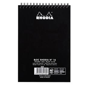 Caderno espiral Rhodia 16503C em tamanho A5 (14,73 cm x 21,08 cm) com 80 folhas, capa laranja