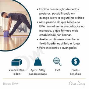 Descrição: O Bloco de Yoga e Exercícios Eva Max é um acessório essencial para aprimorar sua prática de yoga e atividades físicas. Fabricado em EVA maciço, este bloco oferece suporte confiável para evoluir em todos os movimentos desde as primeiras aulas de yoga. Sua versatilidade torna-o indispensável para alcançar posturas estáveis e confortáveis, independentemente do seu nível de flexibilidade. Além disso, pode substituir a almofada de meditação, proporcionando momentos de restabelecimento do equilíbrio durante sua prática. Especificações: Cores Disponíveis: Azul Dimensões Aproximadas: 23 x 15 x 8 cm Material: EVA Tamanho: 23 x 15 x 7 cm aproximadamente Benefícios: O Bloco de Yoga Eva Max oferece uma série de benefícios para sua prática de yoga e exercícios. Com sua superfície macia e aderente, ajuda a melhorar suas posturas, reduzir a dificuldade nos exercícios e trabalhar equilíbrio, força e flexibilidade. Aumenta a amplitude dos movimentos, proporcionando uma variedade de variações nas posturas e facilitando a execução com segurança e conforto. Além disso, auxilia nos exercícios de alongamento, promove o posicionamento correto do corpo e fortalece várias partes do corpo. Material: Fabricado em EVA maciço, este bloco é lavável, macio ao toque e possui alta aderência, garantindo durabilidade e segurança durante o uso. A alta densidade do EVA proporciona maior segurança e ergonomia, tornando-o ideal para práticas esportivas intensas. Permita-se explorar novos níveis de equilíbrio e flexibilidade com o Bloco de Yoga e Exercícios Eva Max. Marca: Não Informado Ean: 7899411512805
