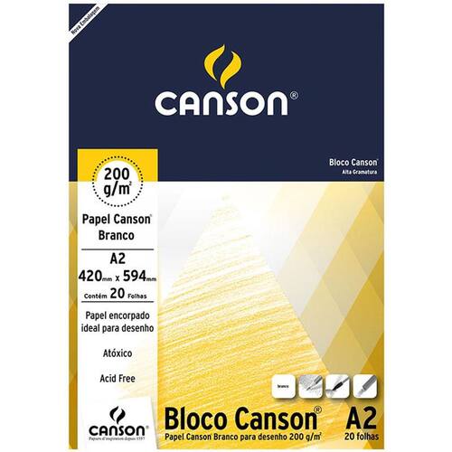 Bloco desenho branco A2 200g - com 20 folhas - Canson