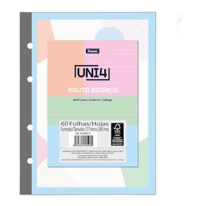 Bloco Fichário Coleg UNI4 Pauta Branca Colors 60fls Foroni Refil para caderno argolado colegial pautado Medidas: 177x240mm Contém 60 folhas, sendo 15 de cada cor Gramatura do papel 63g/m As linhas das folhas são na cor branca Bloco com furação para fichário 4 fechos
