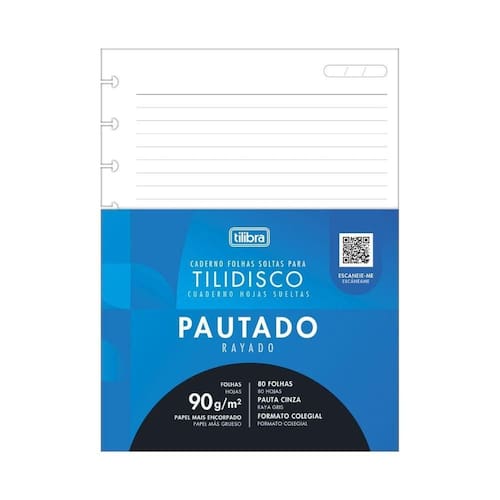 Conheça o Bloco Fichário Colegial 80 Folhas Tilidisco da Tilibra! Suas folhas soltas, com gramatura de 90g/m e formato 177mm x 240mm, oferecem flexibilidade e durabilidade para suas anotações. O papel mais encorpado e as pautas cinza proporcionam um visual sofisticado e organizado, ideal para estudantes e profissionais exigentes. Eleve a qualidade das suas anotações com Tilibra!