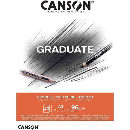 Os blocos Canson Graduate Croquis possuem um papel branco natural com gramatura 90 g/m² e levemente poroso. Composto por 40 folhas com grão fino e fácil de apagar, é o suporte ideal quando é preciso realizar esboços a lápis. Ideal para uso de: Lápis grafite, lápis de cor, pastel, carvão e sanguínea.