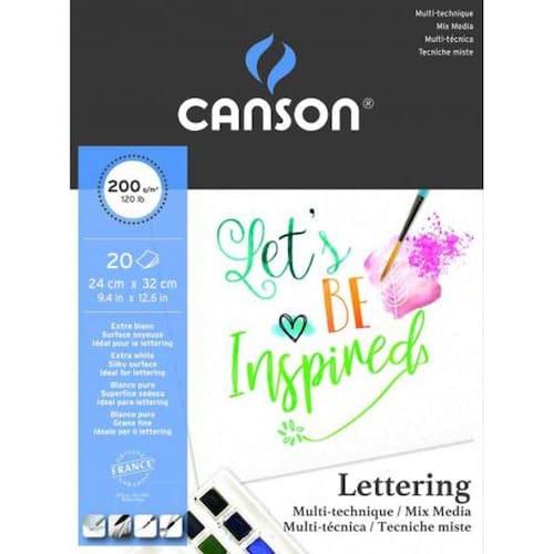 Bloco Lettering Canson Mix Media 200g/m² 20 folhas. Composição 100% celuloso Formato 240mm x 320 mm, gramatura, 200 g/m², fabricado na França. Medidas 24 cm de comprimento, 32 cm de largura e 1 cm de profundidade