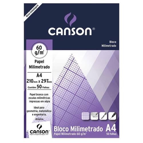 Bloco milimetrado A4 60g - com 50 folhas - Canson