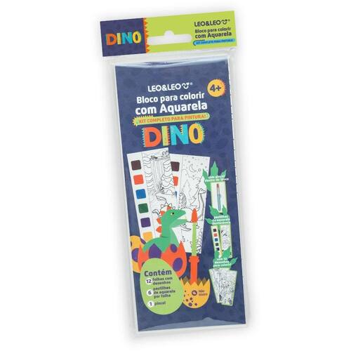 Bloco Para Colorir Com Aquarela E Pincel Dinossauro Leo&Leo
