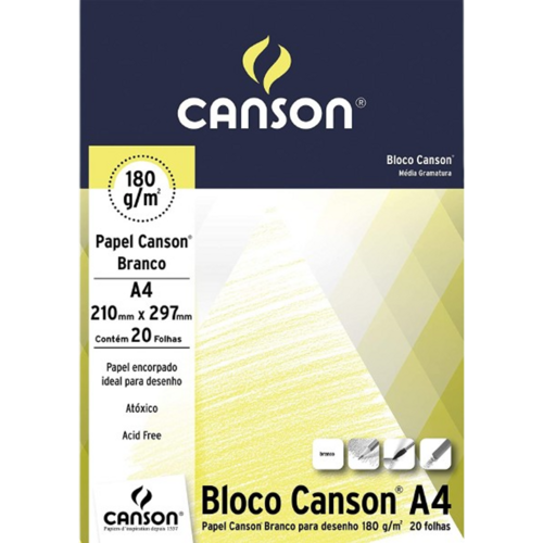 O Bloco Canson Desenho Branco é o produto mais icônico da Marca Canson sendo frequentemente utilizado nas escolas e cursos livres de Artes. Com uma textura levemente granulada, este papel é especialmente indicado para desenhos à lápis de cor, giz de cera e grafite, garantindo uma ótima aderência e vivacidade das cores. Ao desenhar, sua superfície exige maior domínio do traçado, o que auxilia no desenvolvimento da coordenação motora. Sendo de pH neutro, oferece maior durabilidade.